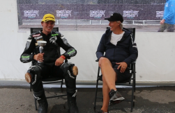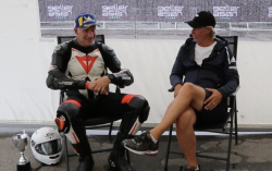 Efter en klurig körning i kvalet och en femteplats så valde han regndäck och körde ut och tog det lugnare än förra året där han som många tycker det är obehagligt med regn men ju mer de kör desto bättre går det, och i detta fall satte han ett riktigt fint brons i gruppen Superbike. Vi snackade också lite om att fler börjar använda både ekologiska och ekonomiska knäpuckar i trä