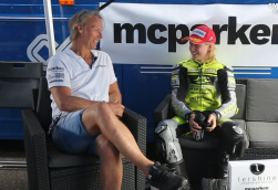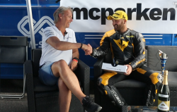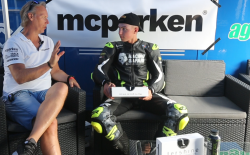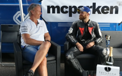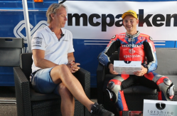 Jesper Pellijeff, som fortsätter och kör strålande och stångades med Joel Marklund under hela racet. De körde så fort så det var över 20 sekunder till tredjeplats och vi måste lyfta på hatten för denna bedrift. Här får vi höra Jesper lite om hojen, motorljuds-problemet och mycket mer! Stort grattis till segern!
