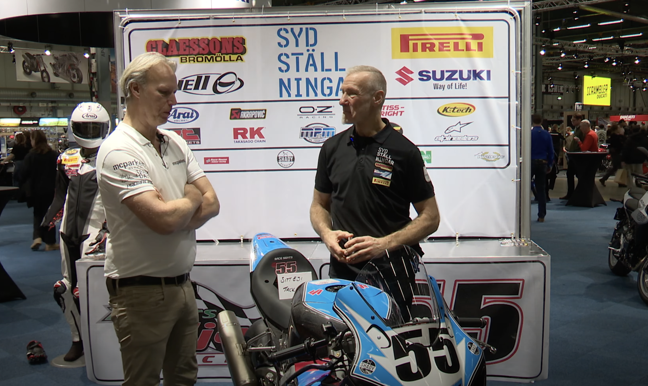 Magnus jobbar på KGK som importerar och är svenska generalagenter för bland annat Suzuki och Honda. Här passar Martin på och fråga lite om eventet, vad som är på väg in och hur säsongen kommer se ut med nyheter av de motorcyklar som presenteras för året.