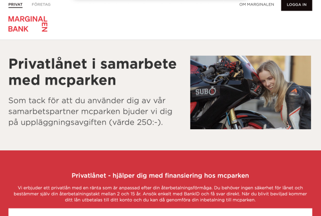 I ett led att hjälpa våra privata annonsörer med förenklad hantering av ett lån så har vi tillsammans med Marginalen Bank nu gjort klart samarbetet så att alla som vill kan teckna lån och få svar väldigt snabbt. Länken vi har tagit fram är https://www.marginalen.se/mcparken som du kan använda för att få tillgång till