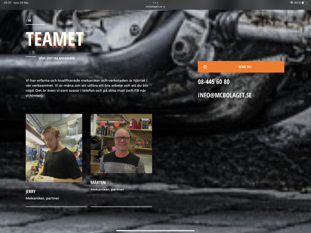 Det finns även verkstäder som mellan varven får in fina hojar men inte har fokus på försäljning. Nu har vi fått äran att samarbeta med fler duktiga företag, MC Bolaget i Järfälla, norr om Stockholm. De annonserar inte på blocket, utan när det inkommer produkter så lägger de upp sina hojar på mcparken.se. De utför service på Harley Davidson, Honda, KTM, Kawasaki, Suzuki, Triu