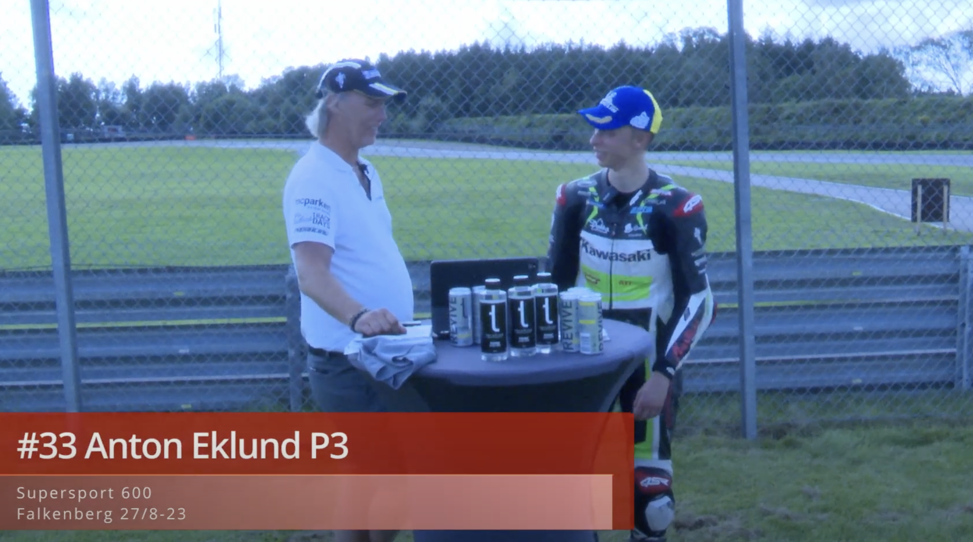 Sebastian tog om jag inte minns rätt sin första pallplats förra säsongen och därefter har han kört bättre och bättre, och bättre. Så bra att denna säsong blev det många pallplatser och till slut ett fantastiskt välförtjänst SM-Silver! Vi fick möjlighet att prata lite med Sebastian om racet och passade även på att prata lite med syrran som också börjar tävla lite på bana. Stort