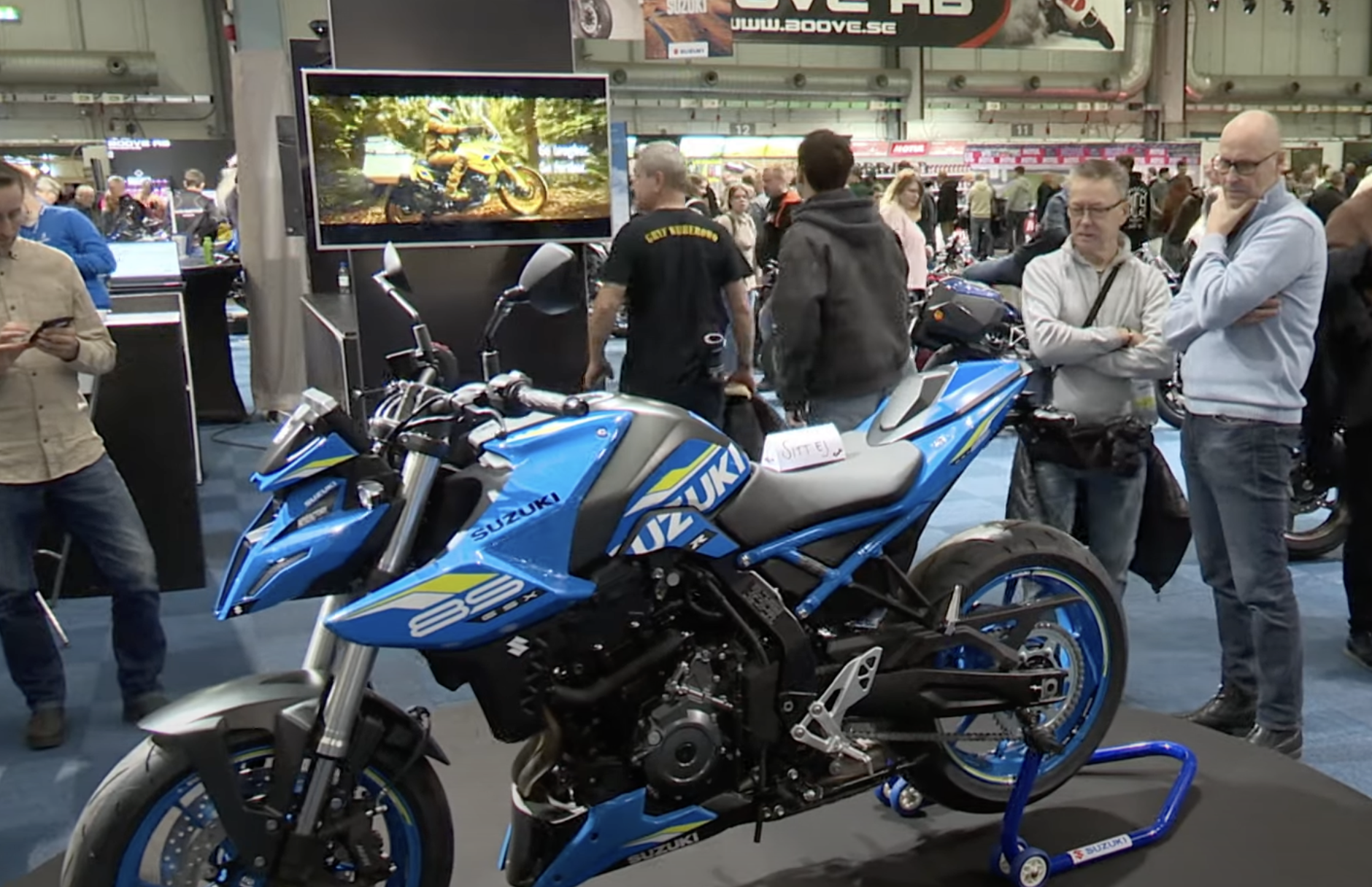 Rasmus Östlund, inköpsansvarig för Suzuki som presenterar några av de nya modellerna såsom GSX-S 8R för 2024. Under flera år har det inte varit så många nya modellen men de två senaste åren så kommer det mer och mer vilket är väldigt positivt för marknaden.