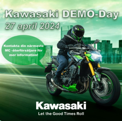 Den 27 april 2024 har alla Kawasaki landsvägsåterförsäljare en gemensam provkörningsdag! Kontakta din närmaste återförsäljare för att se vilka modeller som kommer finnas! Du hittar våra återförsäljare på www.kawasaki.se