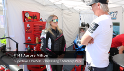 Aurore Milton är en av de fantastiska Superbike-föraren som haft en lång paus men nu åter känner suget att köra igen, vilket hon började med i somras förra året. Den här dagen var det lite strul med både maskin och elektroniken men efter lite mek med kollegan så löste de detta, nu är hon riktigt taggad. Aurore har största fokus på att köra race och det är både viktigt att ha ku