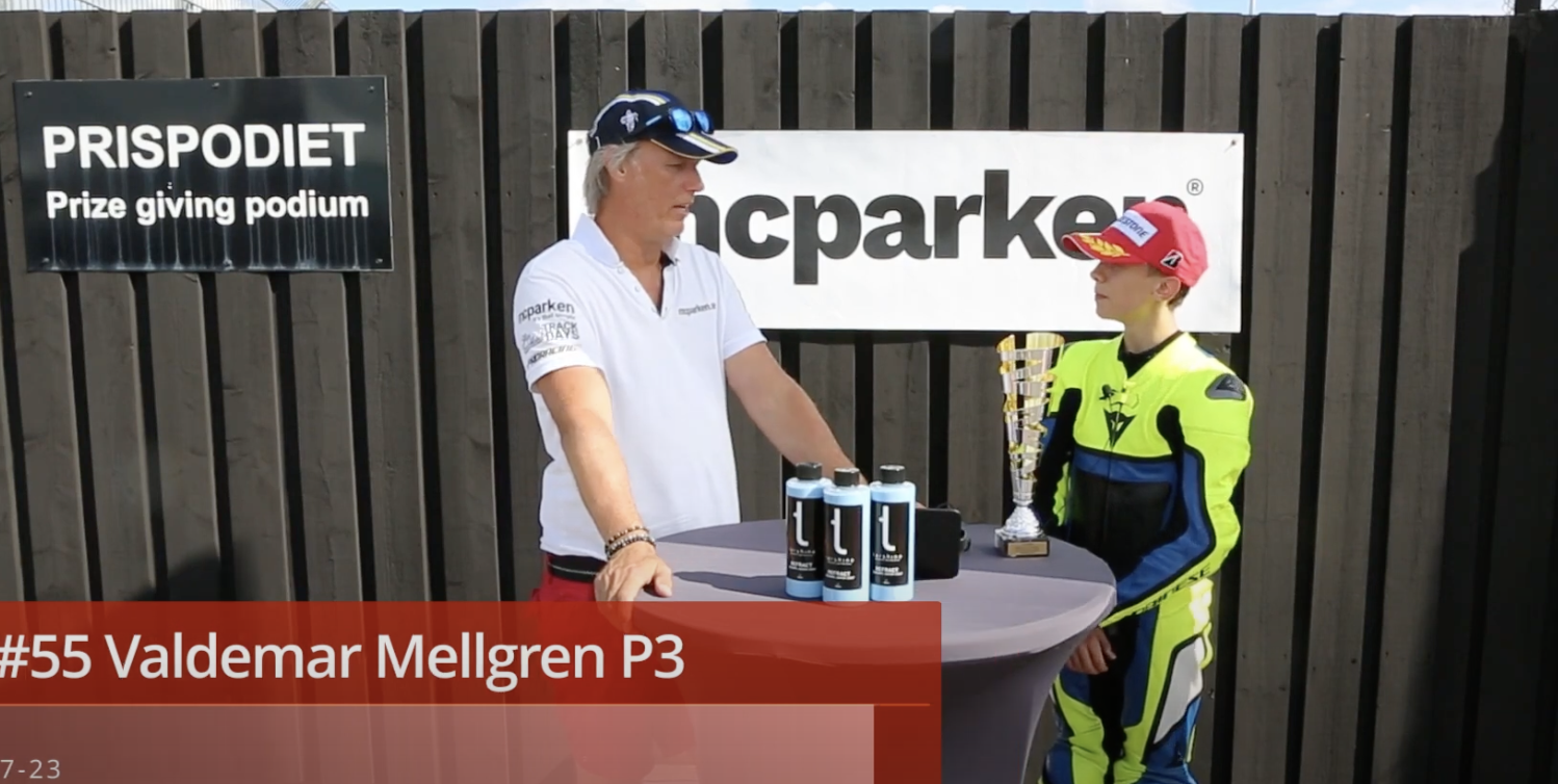 Emil var riktigt glad och nöjd efter en fantastisk säsong som började med en plan om att köra två race under säsongen men istället så blev det nästan alla race och ett SM-GULD! Det är så fantastiskt att han har sådan diciplin att köra så bra och stabilt för det är ingen lätt klass att tävla i där det är otroligt jämt. Emil fick frågan- kommer du byta klass eller köra elmotorcyk